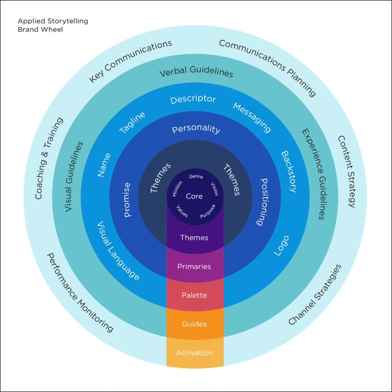 The Brand Wheel™ is a framework for developing a brand story or narrative that helps you attract and retain profitable lifetime customers, talented employees and strategic partners. Working through a story-building framework like this can help you think about each element of your story–and how they relate to one another–so you can articulate a clear, compelling, consistent brand story. A brand strategy and messaging firm called Applied Storytelling developed this model to help their clients develop effective brand stories in a predictable way. Applied Storytelling has successfully used The Brand Wheel to create winning brand stories for business-to-consumer (B2C) and business-to-business (B2B) brands from Lexus to LG Electronics.