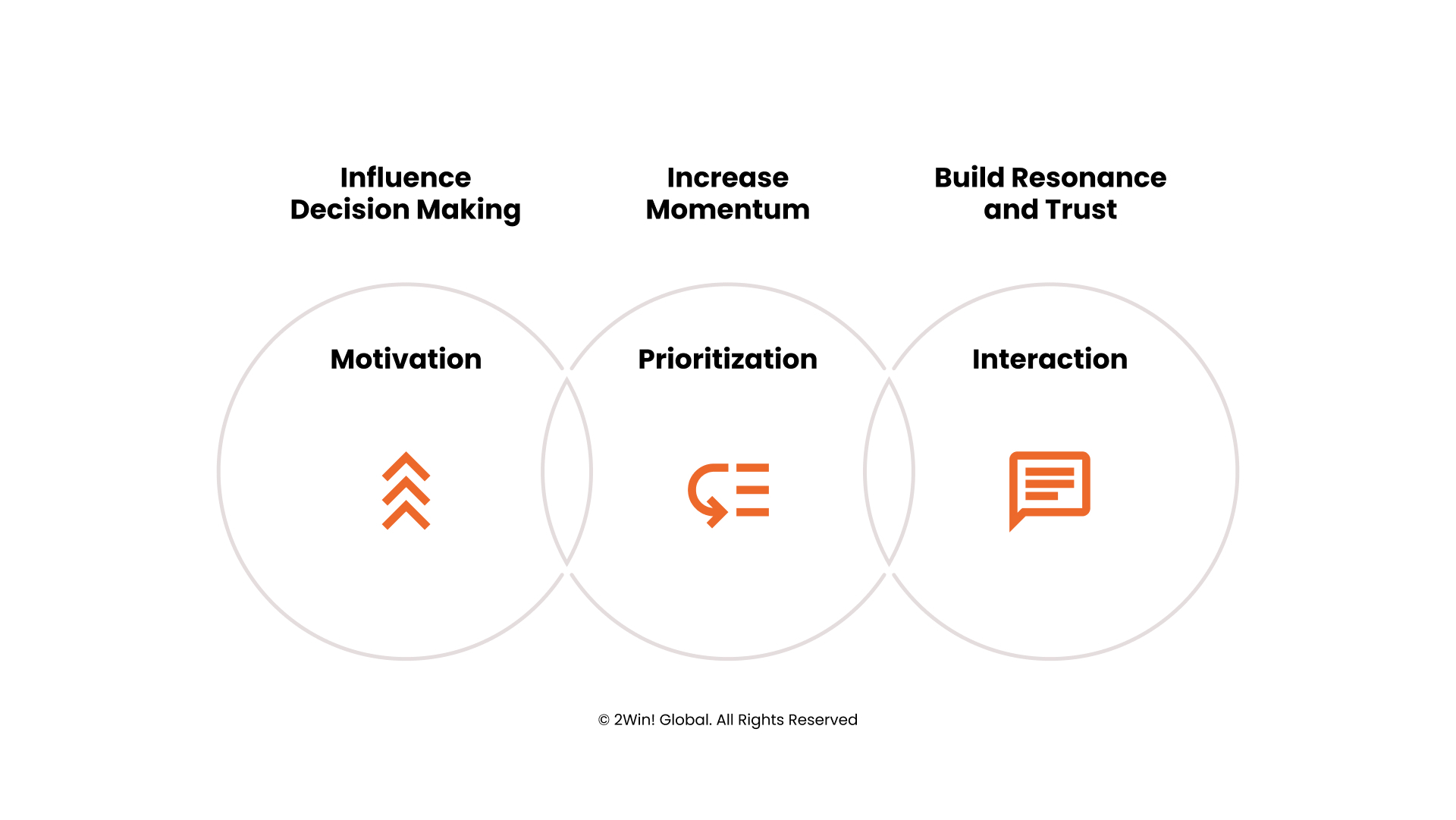 As you’re presenting, align your benefits to audience motivations. When clients can see how the solution will improve their areas of interest, they are more likely to be persuaded to adopt a new solution.