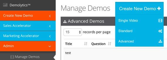 - Admin > Manage Demos > Create New > Advanced