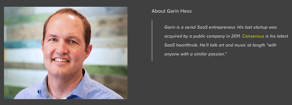 “…one of the things that we consistently ran into [in b2b sales] was selling into groups of buyers. When you’re selling into other companies, you’re constantly running into different stakeholders, decision makers, influencers, procurement and so on – and they all have a different role to play and different weight in the decision making process. And so that’s been a challenge that I’ve thought about and wrestled with for many, many years.” – Garin Hess, Founder and CEO of Consensus