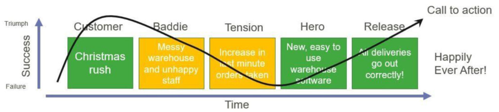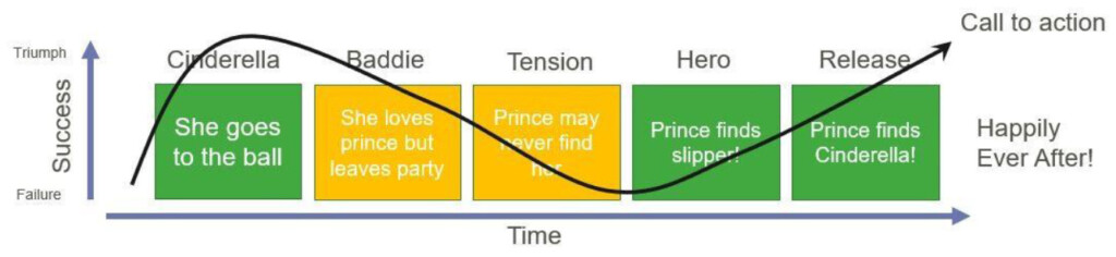 Imagine you’re describing how adopting new warehouse automation software could help a business in the busy rush before Christmas. Rise and Fall would be trying hard and ultimately failing. So let’s apply Cinderella’s story-time arc to your story instead.