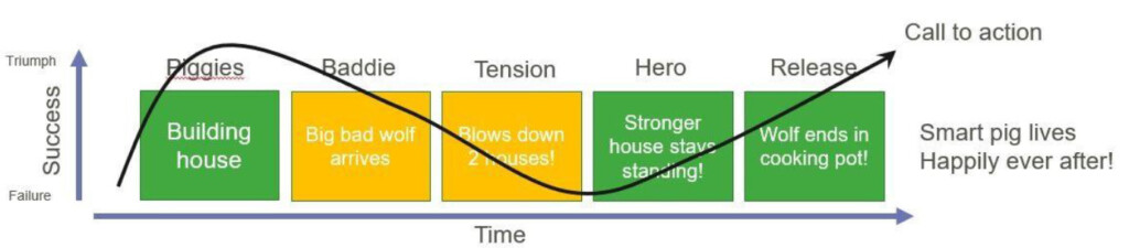 Of course, you can’t just go round telling children’s stories, but for millennia, stories have been crafted round story arcs designed to draw the listener in, to great effect. You can use these story arcs when discussing your project or business.