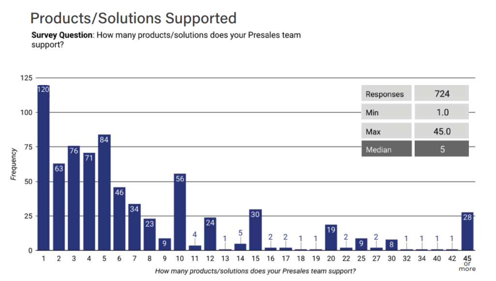 With all these responsibilities and tasks, burn out and churn are very real concerns for those working in presales. According to page 36 of the report, the median work week for presales professionals is 45 hours a week with 43% reporting working longer than that on a regular basis. The cause for this issue could be multiple things, demand scaling, not enough headcount, or too many unqualified demos, but the reality is that presales has become what John referred to as, “the organization of last resort,” who goes on to say, “Presales often enables bad behavior by jumping in at the last minute and fixing any issues.” Don suggests this could be because presales, “Are the ones with the spotlight…[who] go beyond good is good enough.” Whether it’s because they’re the middle of the funnel, or a heightened sense of commitment to their customers, it’s obvious that presales often have too much pressure put on them. With this amount of demand being put on key talent, what can leadership do to ease the pressure before the whole process collapses in on itself?